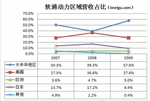 這些行業中,高科技行業占比最大,主要來自微軟、IBM等大型企業集團的軟件分包項目;這些客戶也是軟通動力最賺錢的客戶。2007年、2008年和2009年,來自高新技術產業的收入占軟通動力總收入的40%以上。