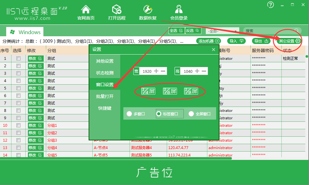 4、如何修改窗口大小的例子,舊版本名稱為分辨率設置,新版本窗口設置更方便,點擊“其他設置-窗口設置-選擇屏幕大小-打開選定服務器”得到效果。與舊版本相比,無需選擇屏幕大小。您還可以自定義寬度和高度!