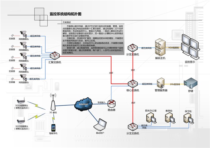 視頻監(jiān)控從第一代模擬視頻監(jiān)控系統(tǒng),第二代技術(shù)模擬+數(shù)字混合監(jiān)控系統(tǒng),與第一代模擬技術(shù)相比,主要是在后期與終端的圖像處理相比,存儲方式的改進,數(shù)字視頻壓縮技術(shù)的使用。第三代數(shù)字視頻監(jiān)控系統(tǒng)在視頻信息的采集、傳輸、顯示和存儲方面采用數(shù)字信號處理的監(jiān)控系統(tǒng)。由于采用數(shù)字網(wǎng)絡(luò)傳輸武漢安防監(jiān)控,故又稱網(wǎng)絡(luò)視頻監(jiān)控系統(tǒng)。安防行業(yè)涉及的系統(tǒng)非常廣泛,如視頻監(jiān)控系統(tǒng)、門禁管理系統(tǒng)、報警系統(tǒng)、樓宇自動化系統(tǒng)、電子巡更系統(tǒng)、公共廣播系統(tǒng)等。